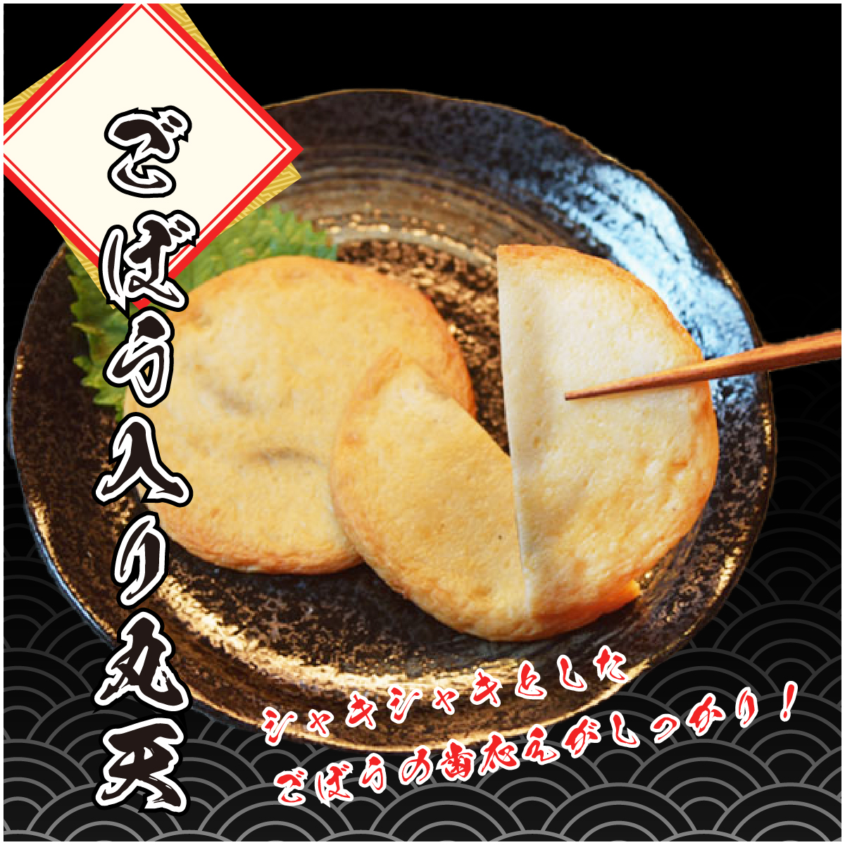 どこか懐かしさを感じる定番の丸天に、刻んだごぼうを加えました。